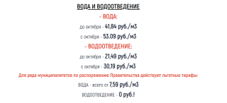 В соответствии с Постановлением Комитета по тарифам Донецкой Народной Республики от 22.12.2025 №20/4 «Об установлении тарифов в сфере водоснабжения и водоотведения на 2026 год», с 01.01.2026 тариф на услуги централизованного водоснабжения и водоотведения за 1 куб.м. составляет:
