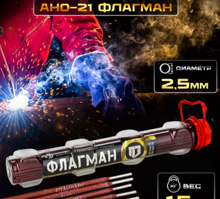 Электроды АНО-21 ф 3,0 мм (ФЛАГМАН) ГОСТ 9466-75, уп. 1-5кг, цена 285 руб/кг