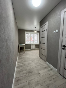 В каждой комнате натяжной, матовый потолок. В коридоре, на кухне, а так же в санузле сделан косметический ремонт. Так же есть балкон, застекленный. На балконе находится подвал.