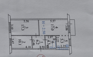 Квартира расположена на пятом этаже. Планировка: две изолированные комнаты и кухня-гостинная, перепланировка узаконена.