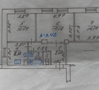 Отличная планировка - общей площадью 70 квадратных метров. "Сталинский" проект, высокие потолки.