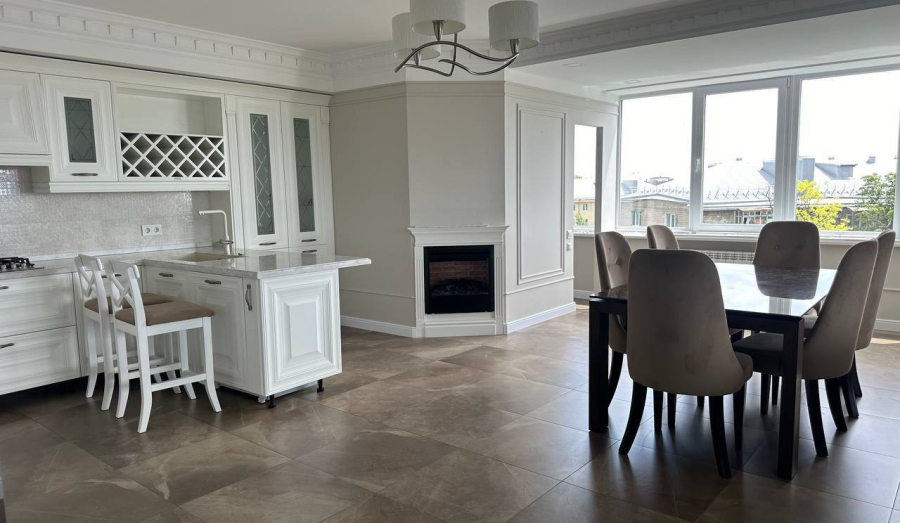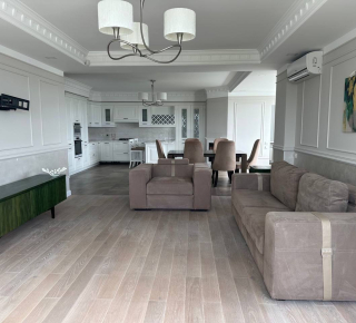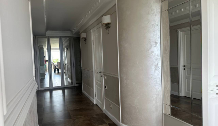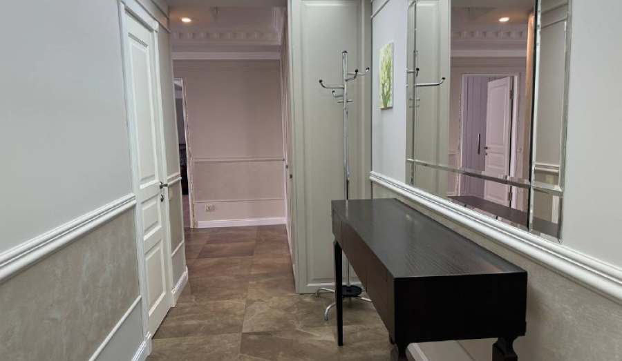 Квартира на 5-м этаже 9-этажного дома. Общая площадь — 126,9 квадратных метров, а жилая — 43,5. высота потолков — 2,7 метров.