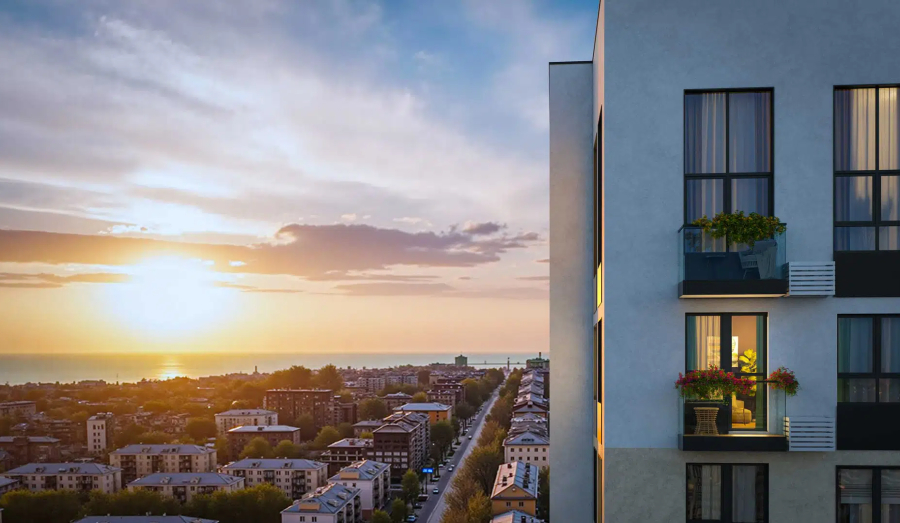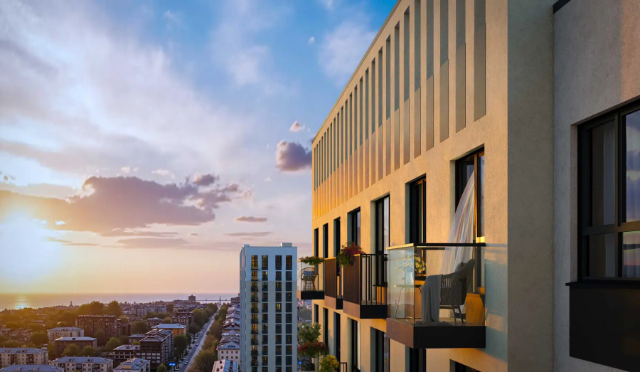 Жилой комплекс расположен в районе с развитой инфраструктурой: в шаговой доступности находятся детский сад, парки, культурные объекты и общественные пространства, море – всего в двух километрах.