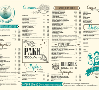 Beer Tower с огромным удовольствием доставит Вам любые блюдо из нашего меню и наше пиво прямо домой!
