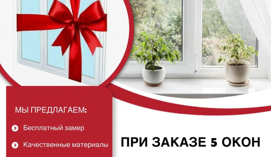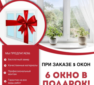 Специально для вас акция 🎁«Покупай 5 окон – получай 6 окно в подарок!»