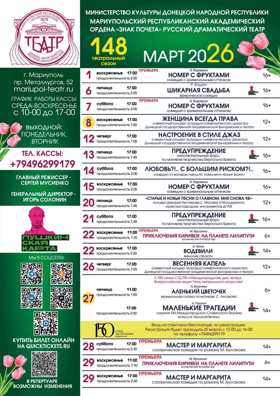 Репертуар на март 2026 | Мариупольский Драматический театр на карте