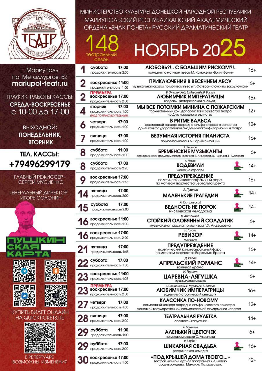 Репертуар на ноябрь 2025 | Мариупольский Драматический театр на карте