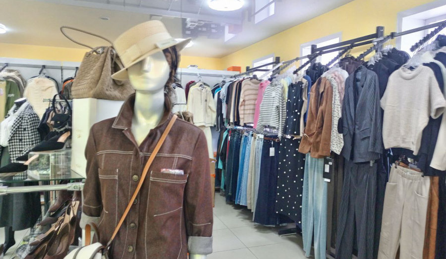 В продаже: одежда, кожаная обувь, сумки и аксессуары.