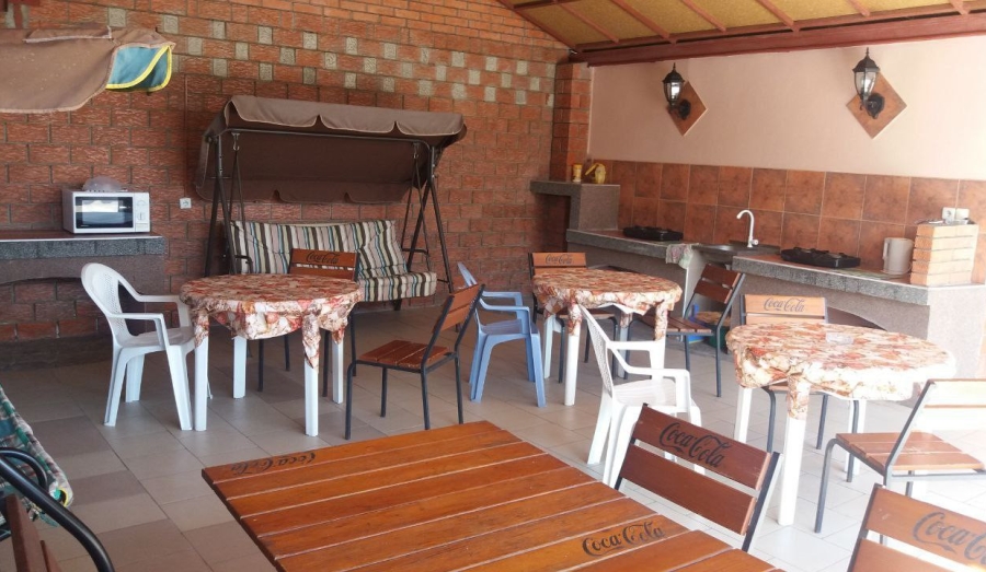 Комплекс состоит из коттеджа площадью 162 квадратных метров, жилой - 84,6. Капитальный фундамент с возможностью достроить второй этаж. На территории расположен гостевой дом 130 квадратных метров. Участок 6 соток, приватизирован. Есть парковка, два колодца, септик. Больше п