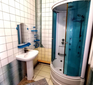 -На первом этаже находится просторная кухня, гостиная, каминная комната, санузел, ванная комната с душевой .