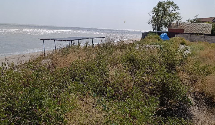 Продается участок 6 соток (ширина 11 метров), Белосарайская Коса, ориентир пансионат "Мрия". Участок находится на песке, вдоль пляжа.