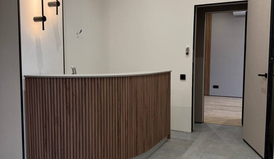 Общая площадь офиса составляет 186 квадратных метров. В нем есть клиентская зона с ресепшеном, четыре отдельных кабинета, переговорная и удобный санузел. Вы станете первым арендатором этого премиального пространства.