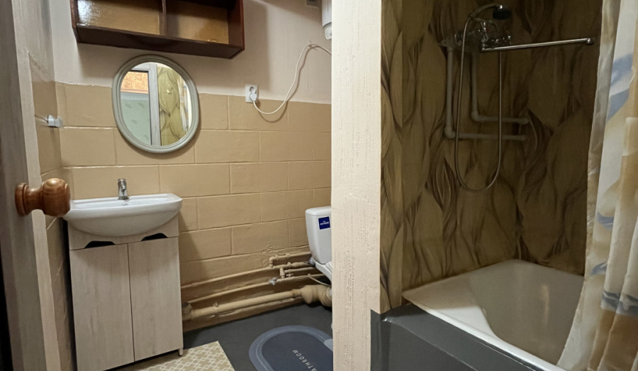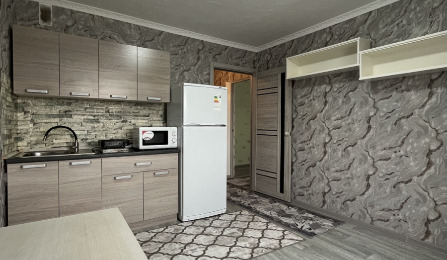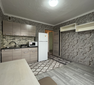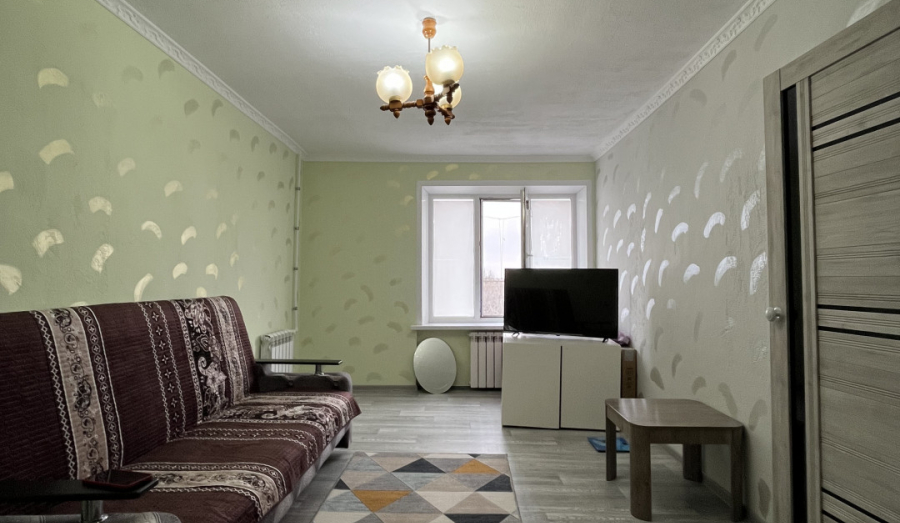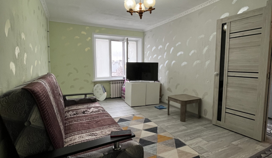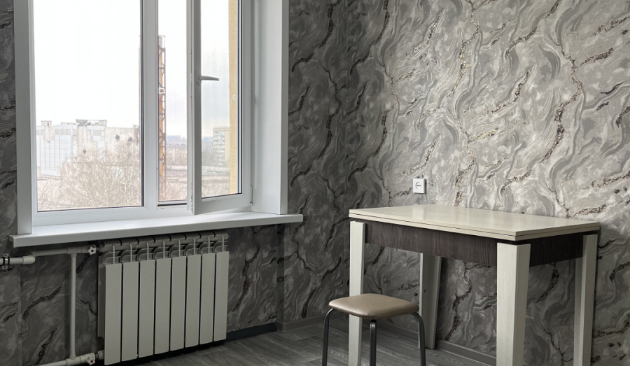 Квартира на седьмом этаже девятиэтажного дома. Общая площадь — 33,7 квадратных метров, а кухня — 11,1. Светлая, с видом на парк "Гурова". Коммуникации обновлены, вода всегда есть. Фасад дома отремонтирован, придомовая территория благоустроена. На фасаде — красивый мурал.