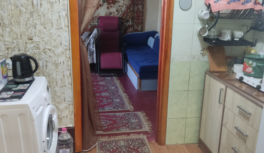 Общая площадь составляет 18,4 квадратных метра, жилая 12,7 квадратных метра, кухня 4 квадратных метра, этаж 3 из 5, состояние жилое. Рядом есть всё необходимое для комфортной жизни: школа, садик, рынок, магазины, хорошая транспортная развязка. До моря 10 минут на авто.