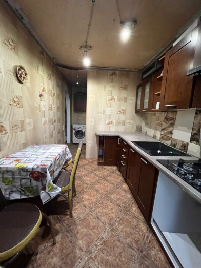 Квартира расположена на шестом этаже девятиэтажного дома. Общая площадь 57,2 квадратных метров, кухня 7,7 квадратных метров. Планировка смежно-изолированная. Квартира угловая, есть две лоджии. Санузел совмещенный. Вода постоянно. Дом во время проведения спецоперации не пострадал. Вся мебель и бытовая техника остаются новым собственникам!