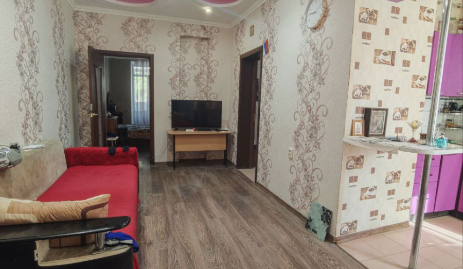 Просторное жилье площадью 54,09 квадратных метра полностью меблировано и оснащено необходимой техникой. Две изолированные комнаты и кухня-гостиная создают комфортное пространство для всей семьи. Раздельный санузел оборудован новой, качественной сантехникой.