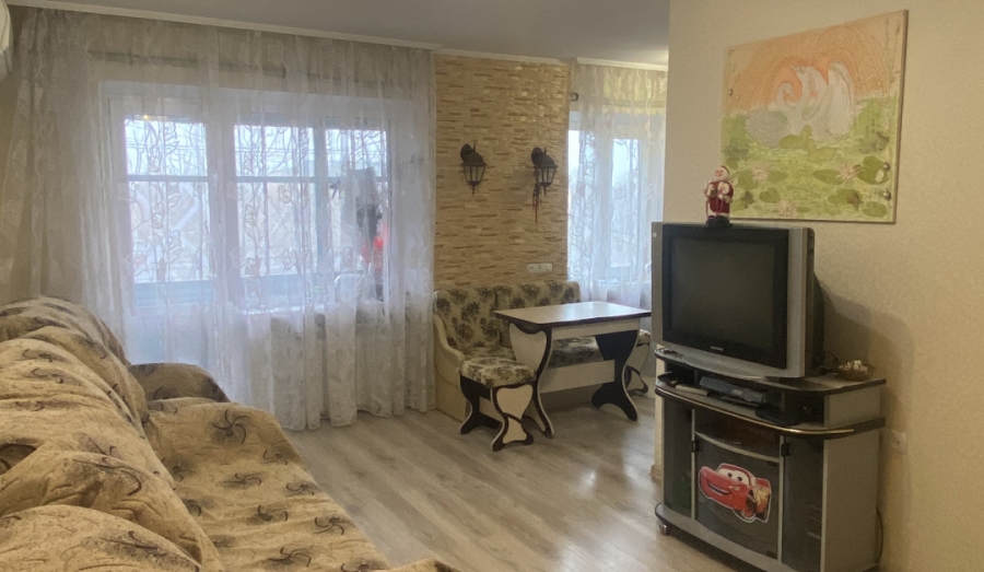 Общая площадь - 53 квадратных метра, жилая - 40, а кухня - 5 квадратных метра. Свежий, комфортный ремонт. Вся мебель остается новым собственникам. Напишите, чтоб узнать о квартире больше.