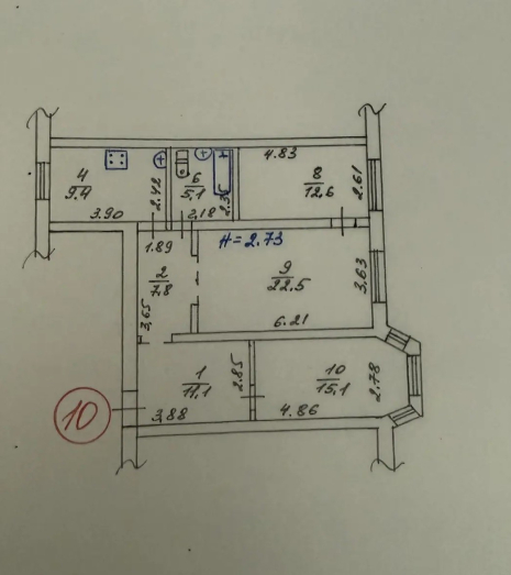 В продажу предлагается трёхкомнатная крупногабаритная квартира на карте