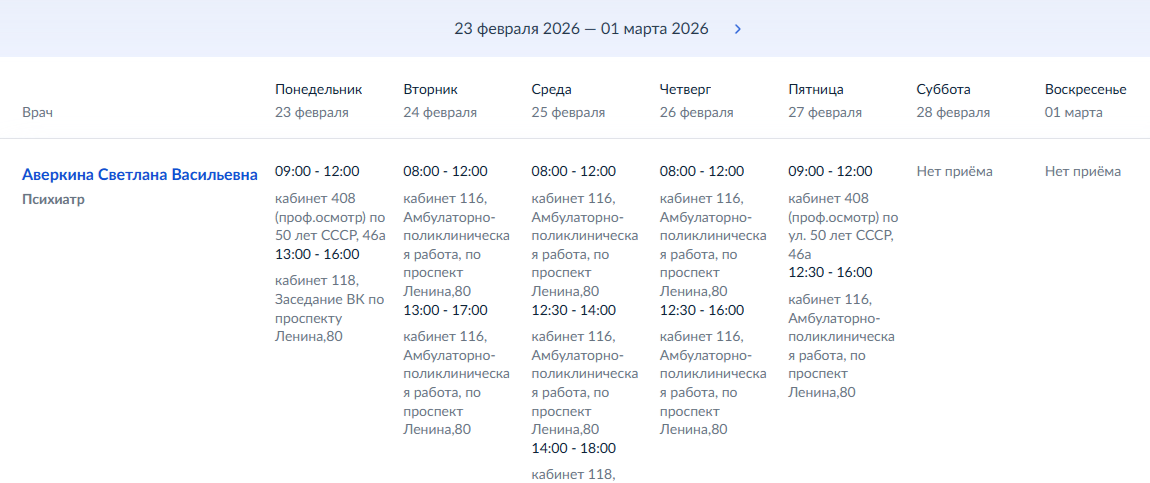Смотрите график приема узких специалистов C 23 февраля по 1 марта 2026 года