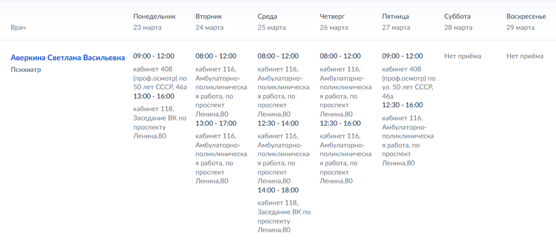 График работы узких специалистов ГБУ ДНР "ММКЦ "БИЛ" г. Мариуполя" | C 23 по 28 марта 2026 года