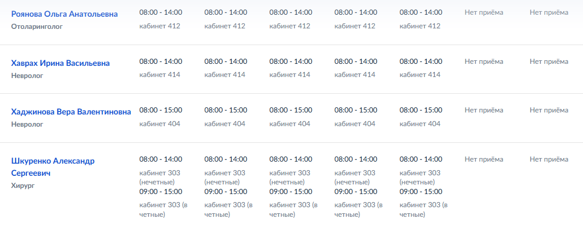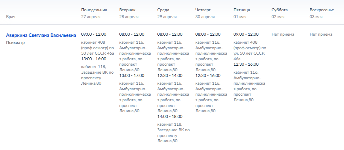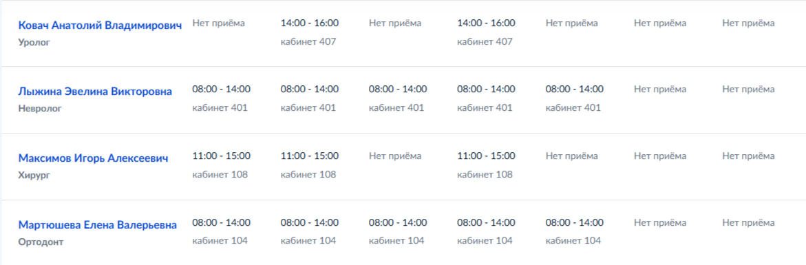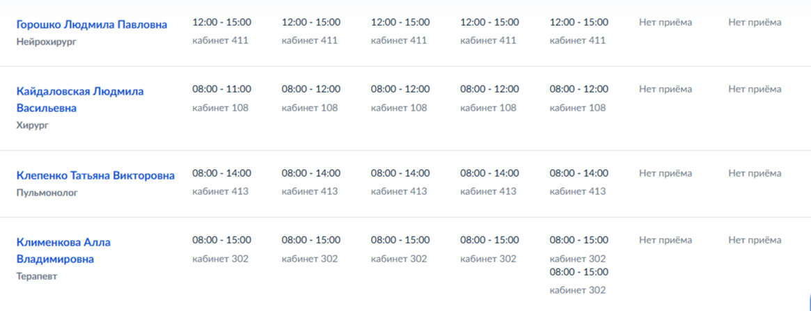 График работы узких специалистов ГБУ ДНР "ММКЦ "БИЛ" г. Мариуполя" | C 27 по 30 апреля 2026 года