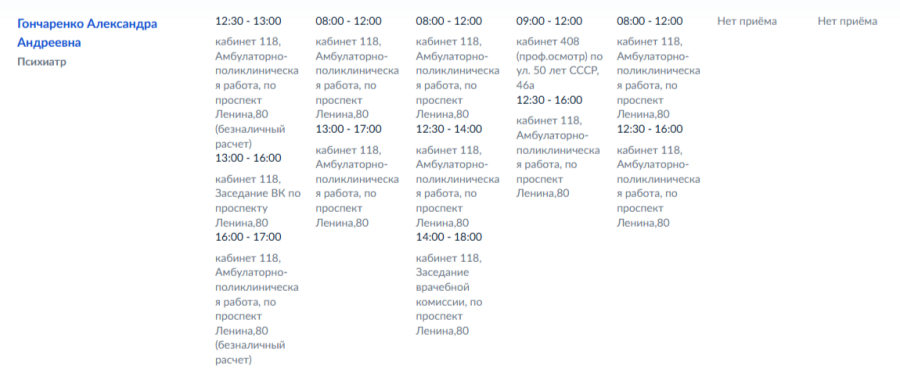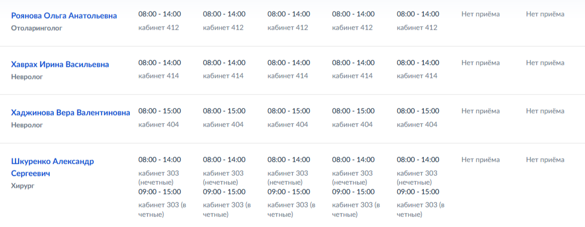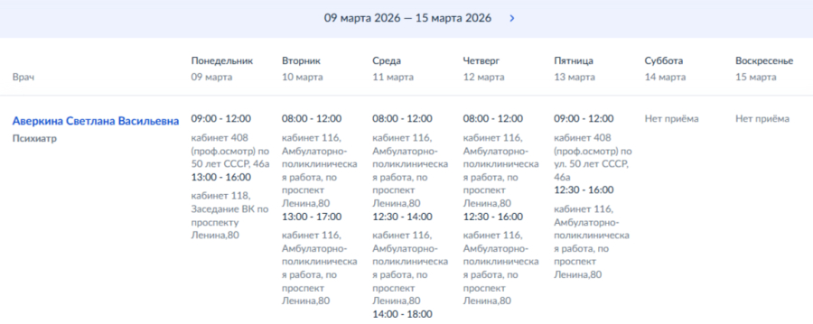 График работы узких специалистов ГБУ ДНР "ММКЦ "БИЛ" г. Мариуполя" | C 9 по 15 марта 2026 года