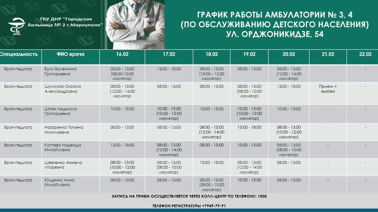 Смотрите график приема врачей поликлиники взрослой и детской, женской консультации и амбулаторий 3, 4, 5 - с 16 по 21 февраля 2026 года