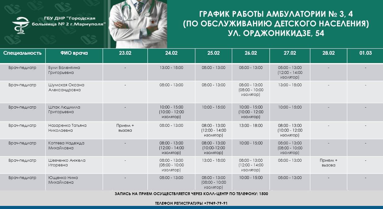 Смотрите график приема врачей поликлиники взрослой и детской, женской консультации и амбулаторий 3, 4, 5 - с 24 по 28 февраля 2026 года