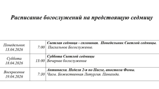 Расписание богослужений | С 13 по 19 апреля | Свято-Покровский храм (левый берег)