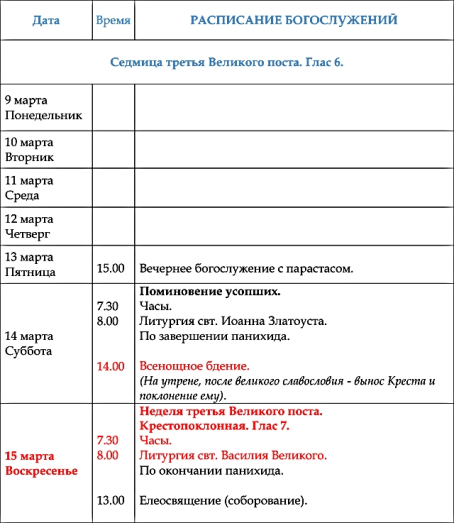 Расписание богослужений | С 9 по 15 марта | Храм иконы Пресв. Богородицы «Млекопитательница»