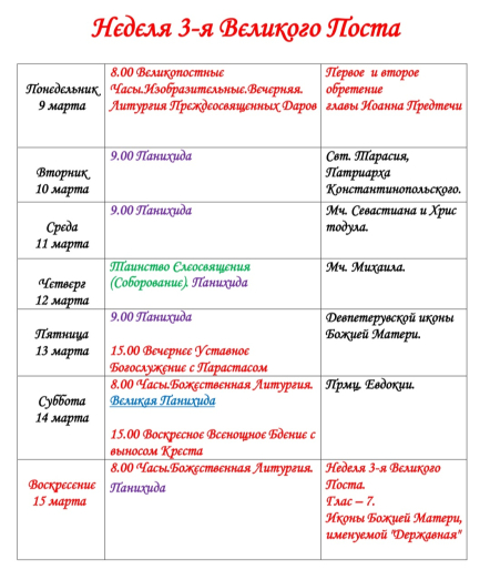 Расписание богослужений | С 9 по 15 марта | Собор Архистратига Михаила (Свято-Михайловский Собор)