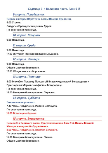 Расписание богослужений | Свято-Покровский собор | Со 2 по 29 марта 2026 г.