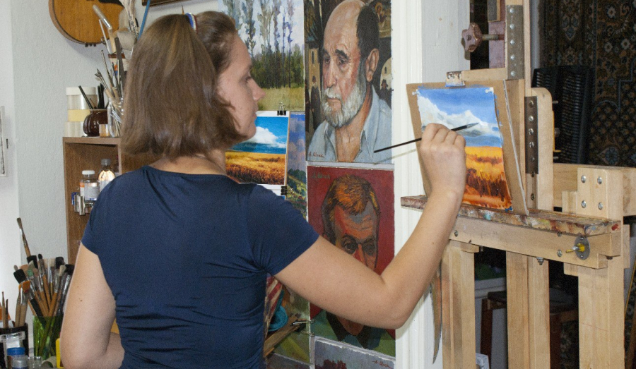 После получения диплома художника-оформителя, посещала групповые занятия масляной живописи под руководством заслуженного художника УССР Шпака А.Г. - конец 2013 г.