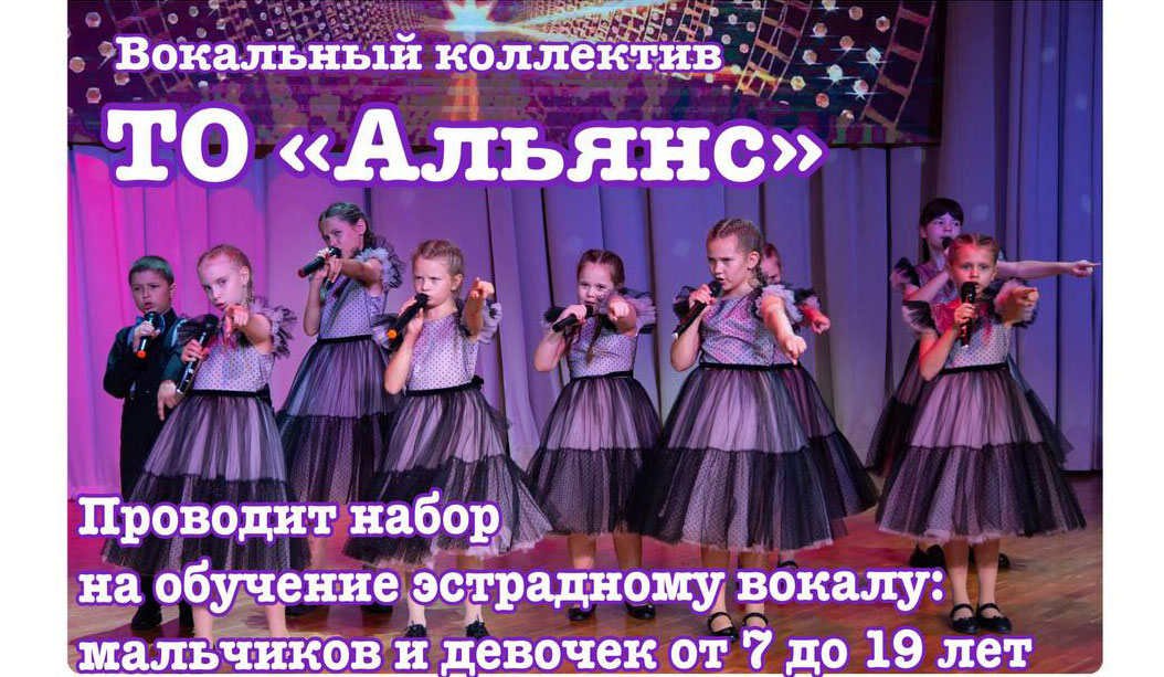 Вокальный коллектив ТО «Альянс» (ДК Металлургов г. Мариуполь) проводит набор на обучение эстрадному вокалу: мальчиков и девочек от 7 до 19 лет.